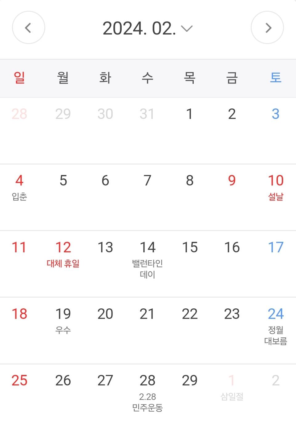 2024 설날 연휴는 2/9(금) ~ 2/12(월)까지